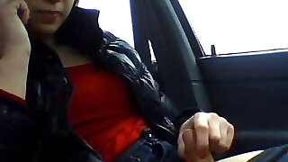 Wild shemale jerks, sucks, and pummels in the car backseat on a active highway