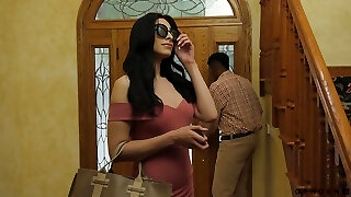 Alluring she,ale with tanned skin and long gams gets banged well