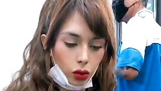 Super hot TS shemale pornstar big mounds cum slut sexy babe Michelly sucks cock & bareback ass fucked
