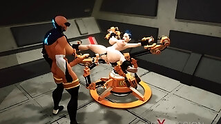 Cyber fuck machine in activity! Sexy shemale plays with super huge-boobed girl