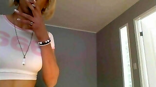 TS HAYDEN Smoking & Stroking her BIG COCK pt 3 ( T-model Smoking Cumshot )