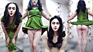 Green Sexy Dress Cute She-creature Ladyboy Hot Body Sexy Dancer Cosplayer Model